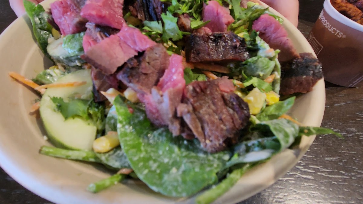 The menu is built around the idea of build your own bowl, and it works because the process is simple and transparent. You start with a base like greens, rice, or broth, then layer in proteins such as grilled chicken, steak, tofu, or salmon. From there, you add roasted veggies, fresh toppings, and house-made dressings. I once watched a staff member explain the entire process to a first-time guest, walking them through flavor combinations and dietary needs without rushing. That kind of interaction sticks with you, especially when you’re trying to eat better without sacrificing taste.